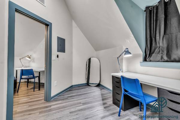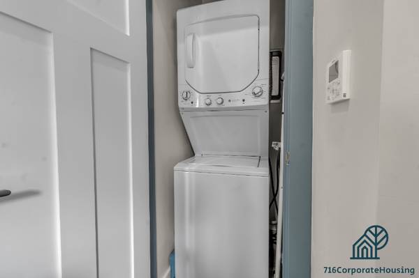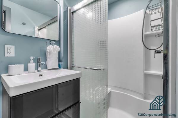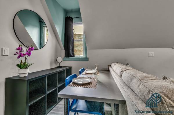 Enjoy the privacy of your third-floor, two-bedroom, two-bathroom apartment in a secure apartment complex. This 2 bed 2 Bath apartment! Ideal for healthcare workers & students, it boasts new appliances and furnishings. * 2 Queen size beds & 2 FULL bathrooms! * Everything is brand new! * Heating and cooling system * Dishwasher * Fully equipped kitchen * FREE In-unit laundry * FREE gated parking * FAST WIFI * Cable and streaming services * Two doors down from Subway station (minutes from Medical district) This two bedroom two bath apartment is perfect for medical professionals staying in Buffalo! It is just minutes from the medical district. Situated just steps away from the bus stop and subway station at Main and E Utica, these apartments offer exceptional accessibility. They're only one subway stop south of the Canisius area and two stops north of the Allen Medical Corridor. 716 Corporate Housing LLC • Buffalo NY Furnished Rentals