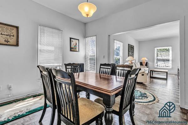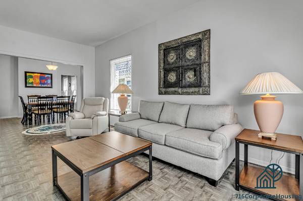 Features: * Queen beds in both bedrooms * 55" Roku TV * Fully equipped kitchen * FREE Washer & Dryer * FREE off-street parking * Flexible lease terms The living room is equipped with a 55" Roku TV for your entertainment. Take advantage of the fully equipped kitchen and enjoy home-cooked meals in the dining area. You will be situated just 0.5 miles away from Elmwood Avenue and a short way from Buffalo State University. The apartment has both lower and upper units with the same features. 716 Corporate Housing LLC Buffalo NY Furnished Rentals