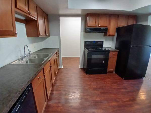 Full-size refrigerator, stove/oven, and dishwasher