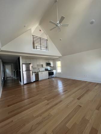 Bright, new massive apartment with mezzanine bedroom overlooking greatroom. You'll have enormous privacy in this pad!! Sweet granite counter topped chef's kitchen. Custom cabinets. Hardwood floors, heated ceramic floor in bathroom. All appliances brand new. Tons of built in storage. On-site parking available.