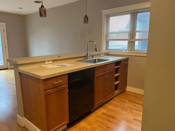 - Airy kitchen with island, dishwasher, loads of counterspace & cabinets