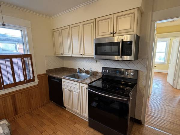 Lots of light, hardwood floors, updated kitchen (with dishwasher) and bath. Front porch and access to fenced in back yard. Driveway parking in the winter. 1 or 2 pets allowed, more negotiable. Washer and dryer available.