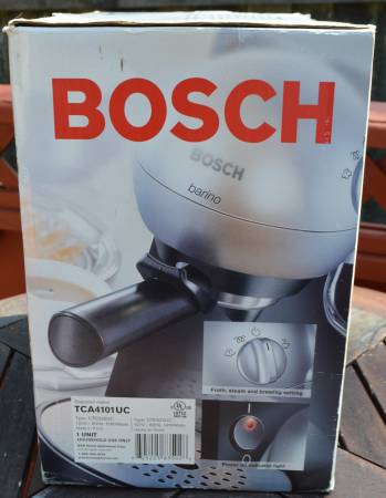 Bosch Barino Espresso Machine - New in box, never used. The Barino excels at making espresso drinks including lattes, mochas, cappuccino and all of your favorite coffee house drinks. Pickup in...