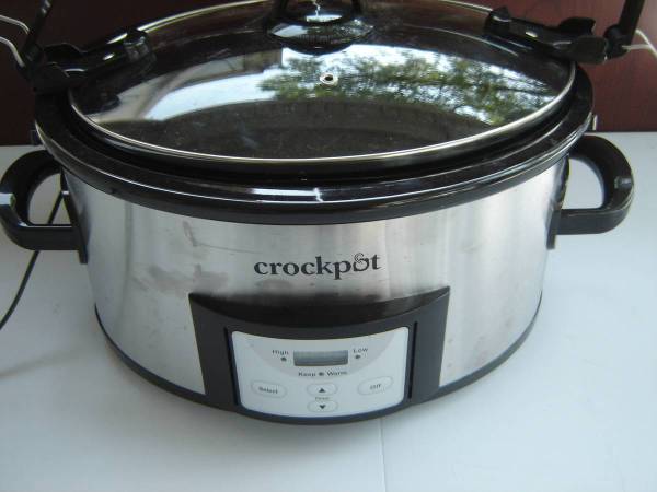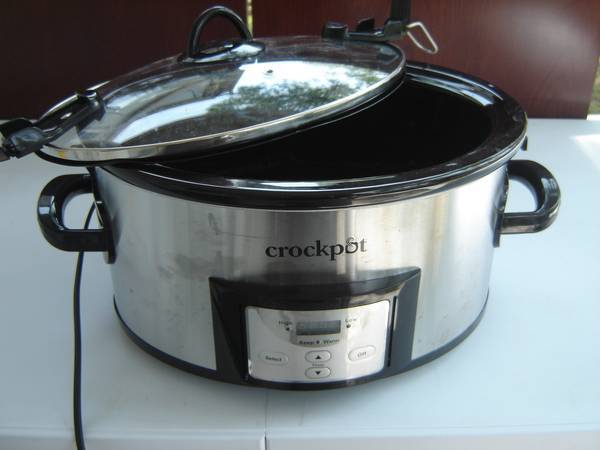 * Crock-Pot 6 Quart Cook &Carry Programmable Slow Cooker with Digital Timer. Stainless Steel. 6-quart capacity is perfect for 7+ people or a 6-pound roast. Easy-to-use locking lid featuring lid...