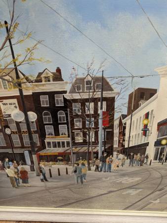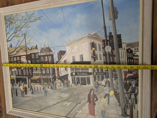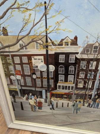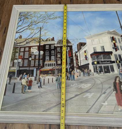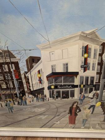 Up for sale is a painting on canvas of an Amsterdam street scene featuring the Hotel Atlanta. It was done in 1997 by Jeffrey Lynch. Painting is in excellent condition. See photos for measurements.