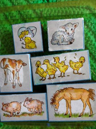 Adorable 6 piece set foam barnyard animals stamps for greeting card making and crafting.
