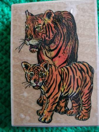 Four quality new wooden stamps for greeting card making. Large size elephant, tigers, giraffe and tropical birds.