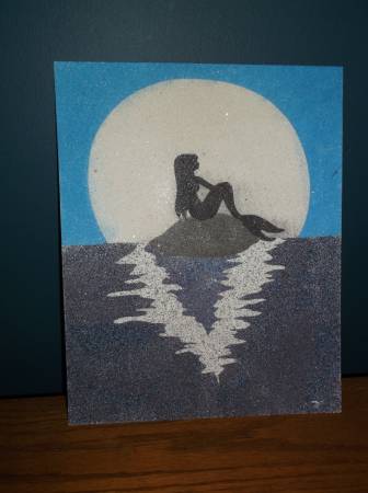 "Breathe" (On canvas) - measures 12x12" "Owl" (pencil drawing in 4x6 frame) "Mermaid" (has a glittery texture) - measures 10x8" Can add a "wooden stand" for any piece for an additional $2 each...
