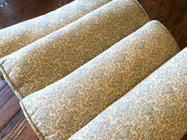 NEW Attractive Four piece bolster pillows Gray blue and cream color For indoor and outdoor use $5. Each