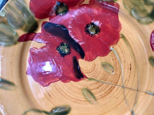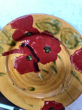 Exceptional Quality Decorative Set New Pier 1 Handpainted Earthenware Vibrant Red Yellow Flower Detail Two 10 1/2 “ Plates $10.