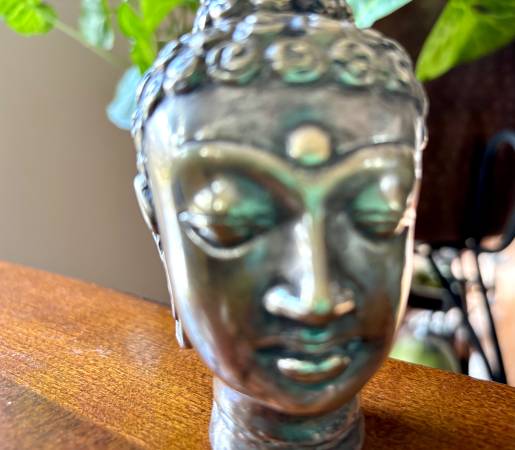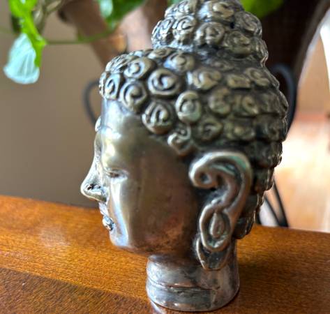 Like New Cast metal Buddha Intricate detailing Approximately 5” Very unique decor item Last pic is price comparison