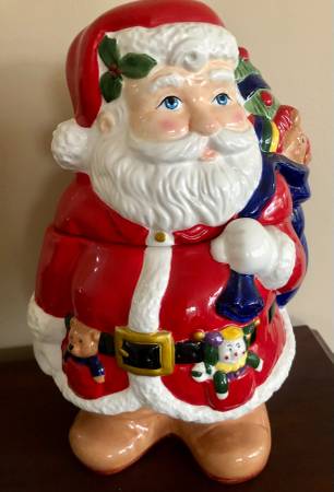Never Used! XL Cute Ceramic Santa Cookie Jar Bright Colorful Cookie Jar Multi dimensional Extra Large size 13” h 10” d