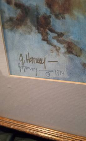I purchased this exquisite Gerald (G.) Harvey print from a small gallery in Texas in 1980 and have held it in my private collection since then. It is in excellent condition with only slight scuffing on small areas of the frame. It was executed by the artist as an Artist Proof. It is a limited edition and quite rare.