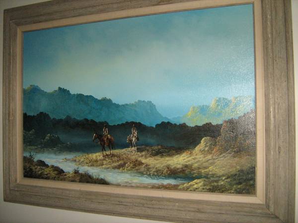 I purchased this exquisite original Lester Hughes oil from a gallery in El Paso, TX in the early 80s and have held it in my private collection since then. It is in excellent condition with only slight scuffing on small areas of the frame. President Ronald Reagan had a Lester Hughes work hanging in the White House! Also, I have chosen the title as it is otherwise unknown to me.