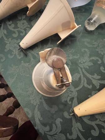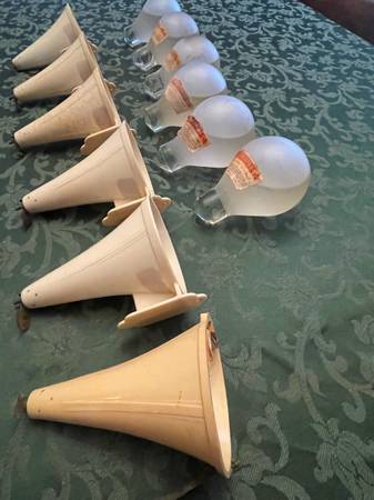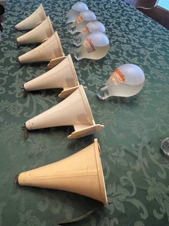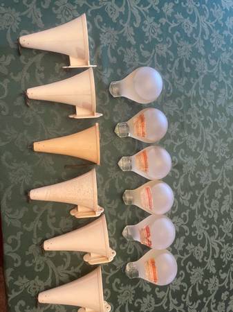 6 red comet fire grenades with wall mount holders. Not filled with tetrachoride, filled with non toxic CM7. Great item for the collector. Contact me with any questions. Pick up only. Thank you