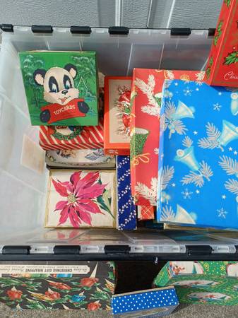I am cleaning out my mother's house and this tote full of vintage cards for christmas/birthdays etc was found inthe back closet > all are in excellent shape and in their original boxes> colors have not faded > over 15 items > all for one price