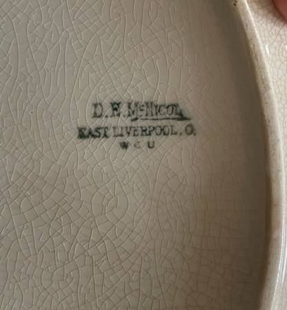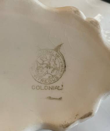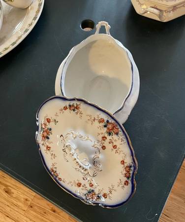 $20 each, or everything pictured for $60. The one has a matching platter (very discolored) and a cup. They’re all about 11” long, 4” high.