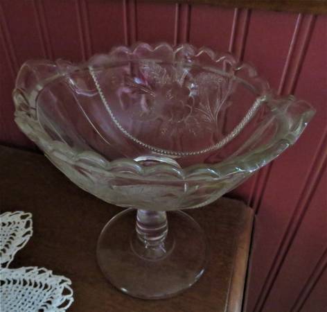Vintage Crystal Compote Dish, scalloped, stem - for candy, nuts, etc