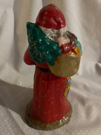 Unique Vintage Christmas Candle Carved to look like Victorian Santa Clause carrying toys, tree and sack of presents Measurements - 7.5" tall; 3.75" base Age - ??? (Most probably late 1800s to early...