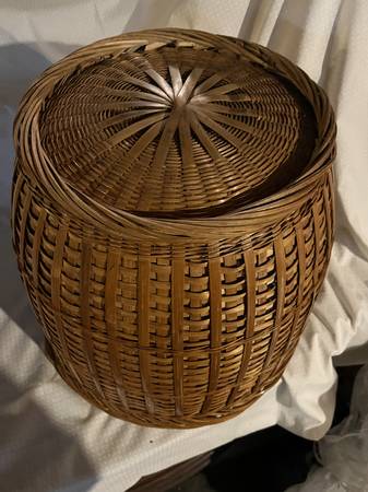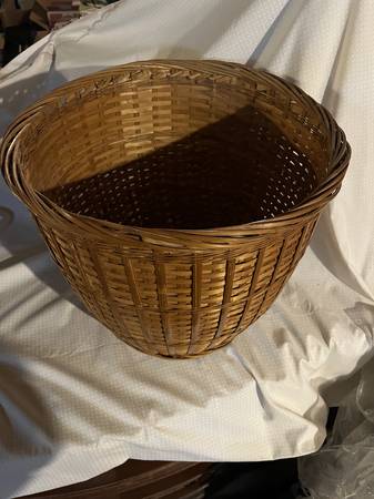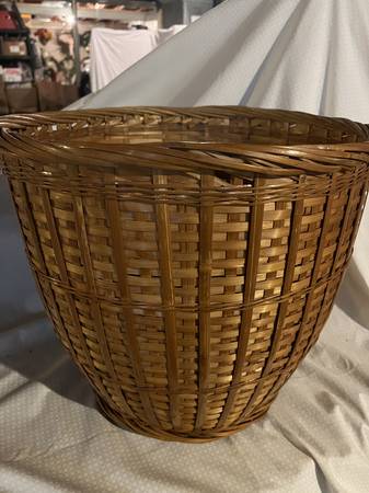 Vintage Woven Wicker and Bamboo Basket Large size: 14.5" high 16.5" diameter at top 11.25" diameter at bottom Pristine condition - could be used for planter, laundry, etc Pick up today for $175!