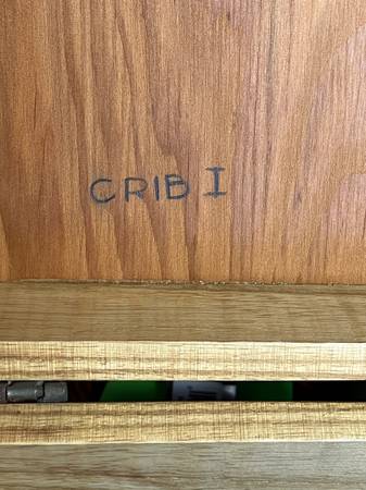 Vintage Solid Wood Filing Box Measures 13.75" long, 6.75" wide, 5.5" high Dovetail corners and metal hinges Unmarked except for "CRIB I" on inside cover Not refinished (original condition - used in...