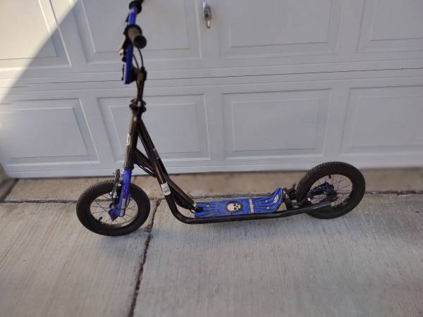 The original and very popular Mongoose Expo Youth Scooter BMX Style, 12" inflatable wheels, front and rear caliper breaks, with a Wide Foot Deck for Kids. Just had it tune up. It's in excellent...