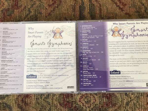 Two New Smart Symphonies CD for babies. Includes Vivaldi, Mozart, Beethoven, Bach and other Composers. CD could be purchased separately ($4/each).