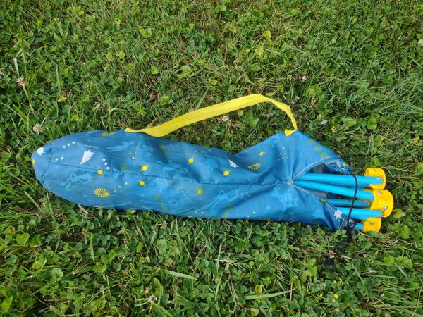 Woody, and his pals adorn this blue and yellow toddler/small child folding chair. Has mesh cup holder on one arm and a strapped vinyl carrying bag is included.