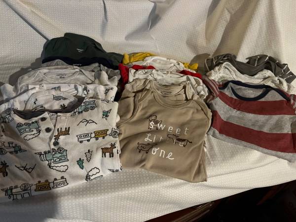20 Pieces Baby / Infant Boy "Carters" Clothing Size 18 month Fall / winter Includes: 1 - LS T-shirt 13 - LS Onesies 2 - LS Thermal Onesies 3 - Pants 1 - Fleece Hooded Jumper Excellent condition -...