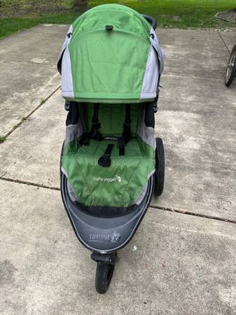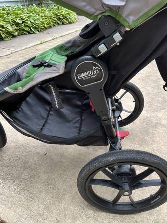 "Baby Jogger Summit X3" Single Jogging Stroller Green / Gray 3-Wheel, Adjustable Back Rest, Adjustable Handles, Adjustable Leg Rest, All Terrain, Auto-Locking, Basket Like-new condition - Some minor...