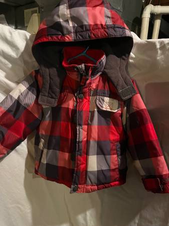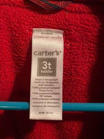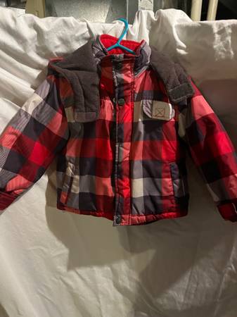 "Carters" Winter Hooded Puffer Jacket Unisex Size 3T Red Plaid outside; red and grey fleece lining Excellent condition! Pick up today for $18! (Cash only, please)