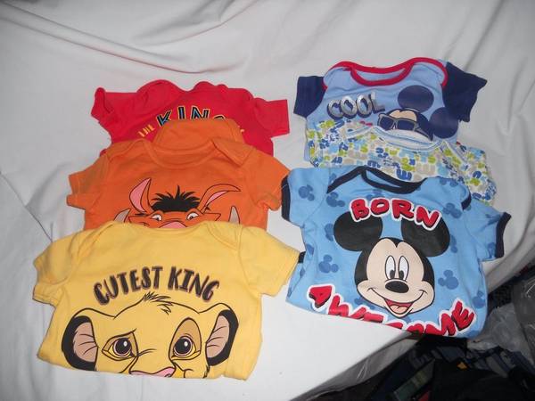 6 “Disney Baby” Boy SS Onesies Size 3-6 month Includes one pair Disney booties Excellent condition - some pieces never worn! Pick up all for only $18! (Sorry, will not split)
