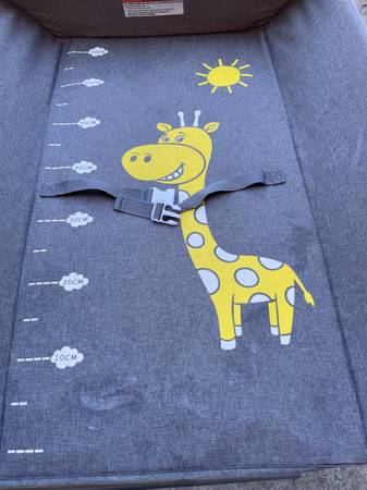 "Kinbor" Baby / Infant Folding Changing Table Gray with Giraffe Design and security belt Soft, removable pieces for easy cleaning Zippered compartment holds sturdy plastic board for additional...