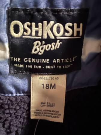 "Oshkosh" Jacket for Baby / Infant Boy Size 18 month Fall / winter Fleece-lined, hooded, water resistant Great condition! Pick up for only $15! (Cash only, please)