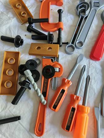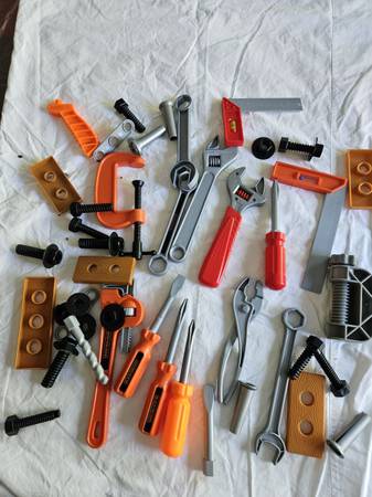Kids plastic toolbox and plastic tools. Really good condition. Tools as seen in the photos.