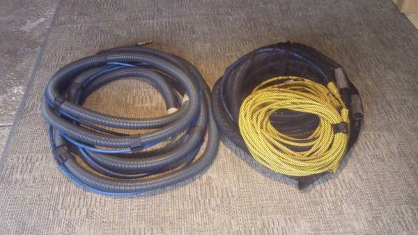 Kit includes 2-jet Carpet wand, single jet Stair wand, upholstery tool, two 25' vacuum/solution hoses, carpet brush/rake combo, and 2 50' extension cords. (1 for machine & 1 for heater)