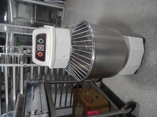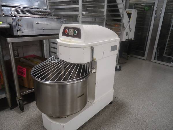 Small Spiral Bread Mixer. Works. Old. Bowl has a small crack on top. 220v. Bowl is 18" diameter by 12" deep.