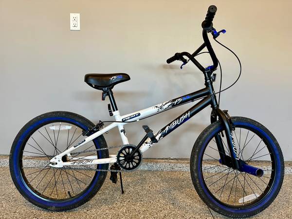 Used Kent Ambush Blue/White BMX FS Bicycle. 20” Wheels. Ages 7-14. Excellent Condition. Cash only. Phone or text, 512-nineteen-ninety-four. Thanks!