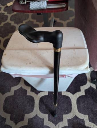 Left hand cane, handle fits in your left hand. Height adjustable, black and gold,