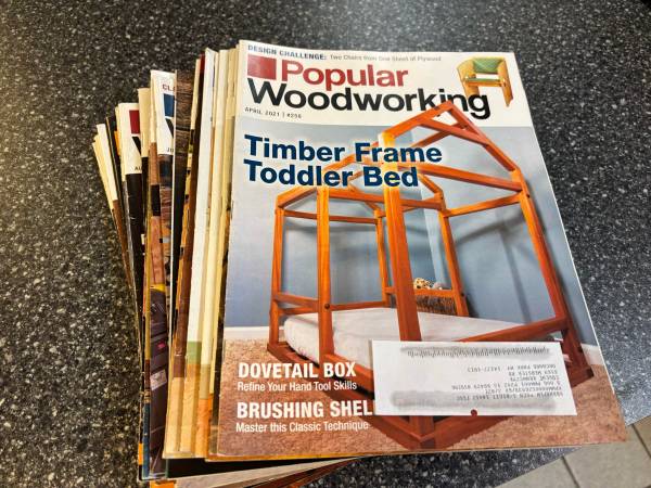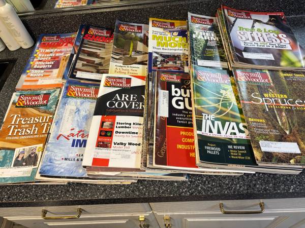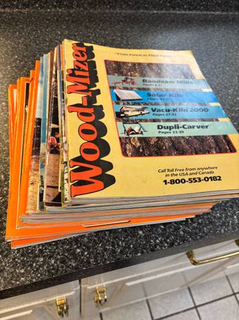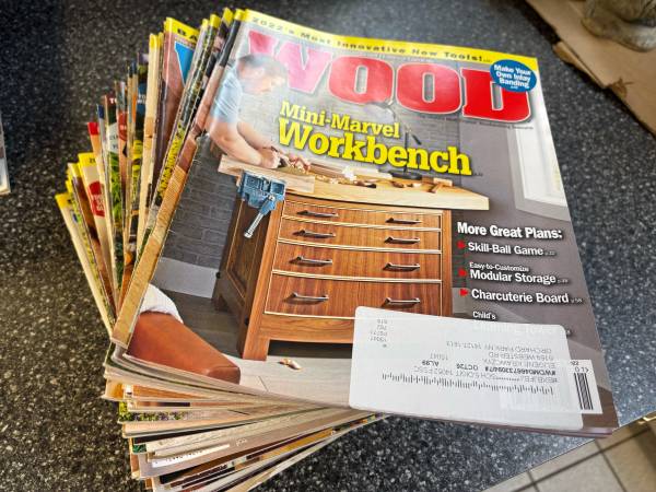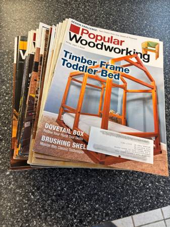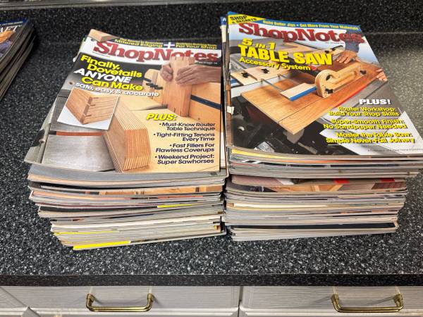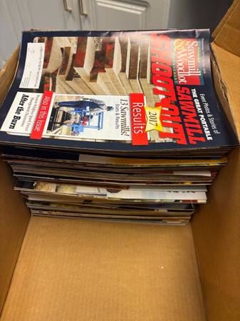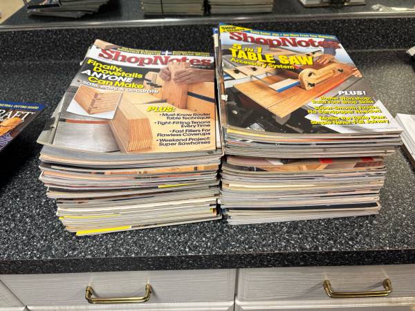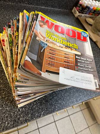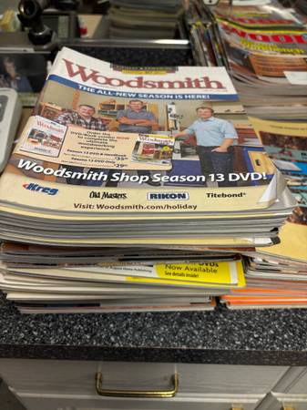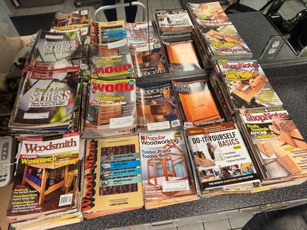 A collection of woodworking plans, projects, and great hints on woodworking tips. Includes years of subscriptions of WoodSmith, Sawmill & woodlot, Woodmiser, woodworker’s journal, Woodcraft, Wood, popular Woodworking, Shop Notes, and Family Handyman. All in like new shape.
