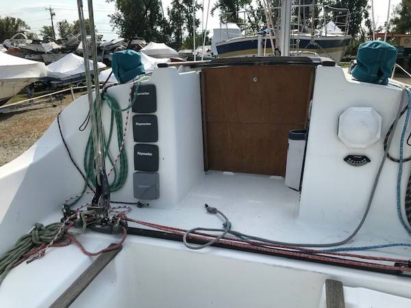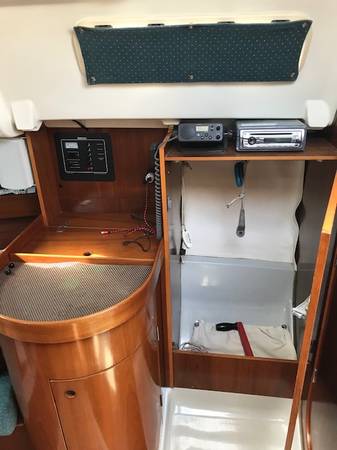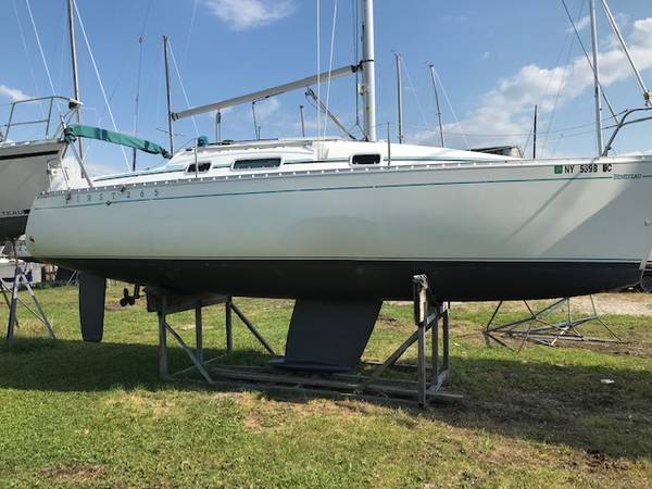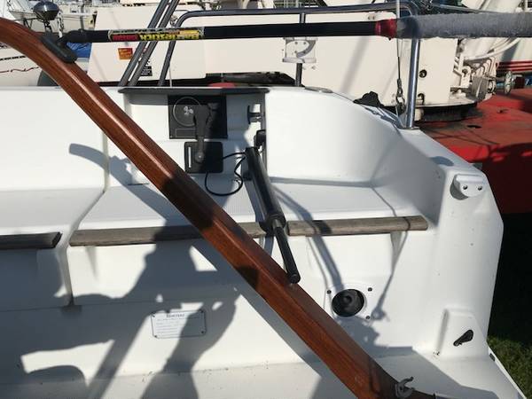 This is a very comfortable and well maintained cruiser. She is 26.5 ‘ long with 9.4’ beam and a 4’2” draft. It has a Volvo diesel inboard engine,with a feathering 3 blade propellor. Tiller helm. Bimini. New Raymarine wind ,speed and depth instruments were installed in 2021. She is equipped for shore power ,has a full head with shower, sleeps 4 comfortably. There is a galley with ice box , alcohol stove , microwave oven , sink. VHF Radio with mast mounted antenna, stereo.Raymarine Autohelm. The sails are Sobstad laminate and were new in 2019. They are in excellent condition . It has a roller furling 140% Genoa, fully battened main. Extra sails are : a 100% Dacron(Ullman Sails) Jib that has never been used,and a 140% ultra light Genoa(Summerset Sails). It has a custon made removable carbon fiber Bow sprit and a Quantum asymetrical spinnaker. Winter storage cradle is included. 12:1 in boom outhaul. The running rigging is all current,with top quality line. VC-17 bottom. PHRF-LE ratings: Jam 199,Spinnaker 189.