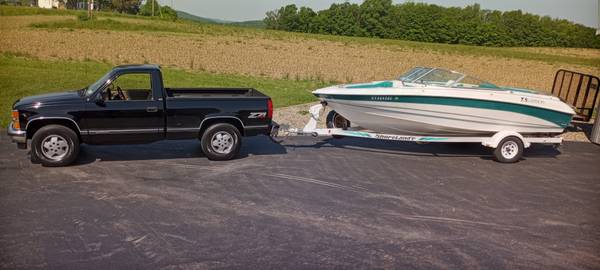 20 FOOT OPEN BOW 5 LITER V8 ENGINE MERC STAINLESS STEEL PROP VERY CLEAN BOAT COMES WITH ROLLER TRAILER PLUS ALL LIFE JACKETS NEWER COVER AND BIMBANY TOP AND ALL EQUIPMENT 600 HOURS