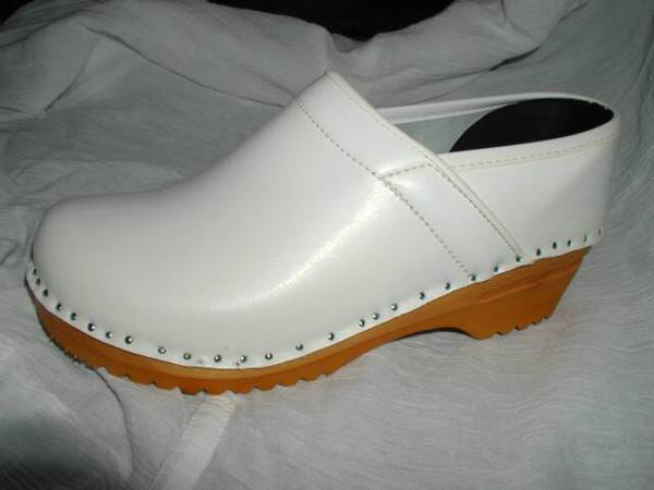 Nightengale Bastad/Troentorp White Clogs are Size: 39 US 8 1/2 - 9 and Size: 41 US 10 1/2 - 11 These sizes are based on Womens European Conversion (Close back clogs may be a size smaller) $90.00