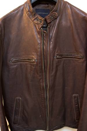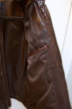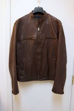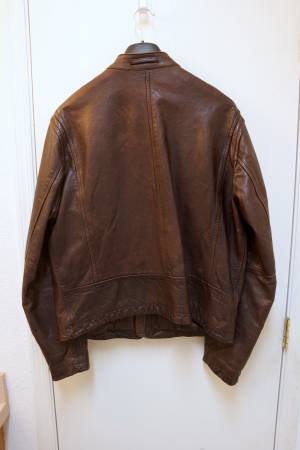 This is a great biker style leather motorcycle jacket. Barely worn and looks like new. Originally paid $700 for this. Made from heavy duty cowhide leather. Feels how leather jackets used to feel...