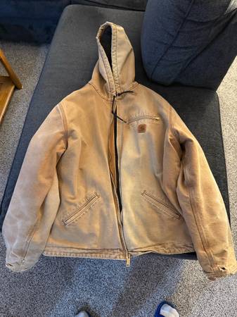 Selling my used Carhartt Sherpa lined XXL winter jacket, good for the upcoming winter, it’ll keep you warm, there are a couple tears by the wrist due to some wear and tear from the wash and general use so I dropped the price from $50 to $40, message me if interested.