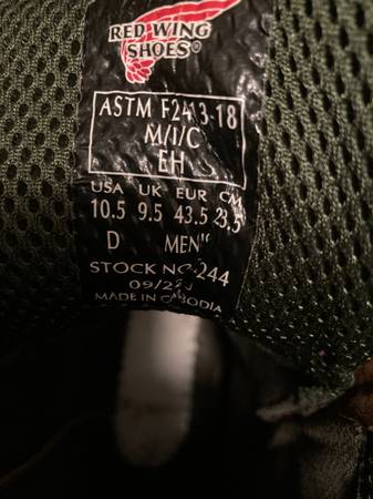Men's Red Wing 8" work boots size 10.5 D (regular width). Model 2244 King Toe, safety toe, waterproof, 400g Thinsulate. Do not leak. Footbed liners never used (uses his own arch support liners) Best...