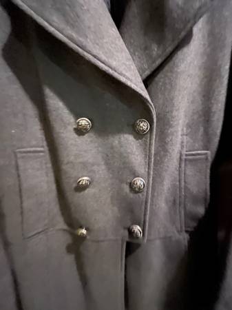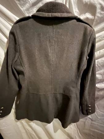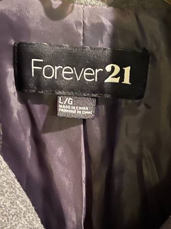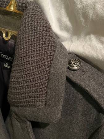 Women’s / Junior's "Forever 21" Stylish Grey Pea Coat Size Large Wool Blend Double Breasted Matching buttons on sleeves and epaulets Set-in knit collar Fantastic condition - barely worn! Pick up...