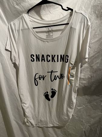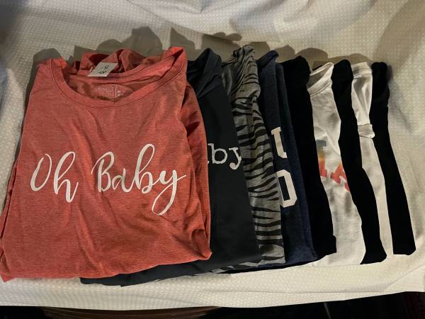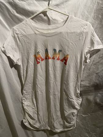Short Sleeve Maternity Tops Size Medium 10 available (6 with graphics, 1 solid white, 3 solid black) Excellent condition - one new with tags Pick up individually for $5 each or make deal for...