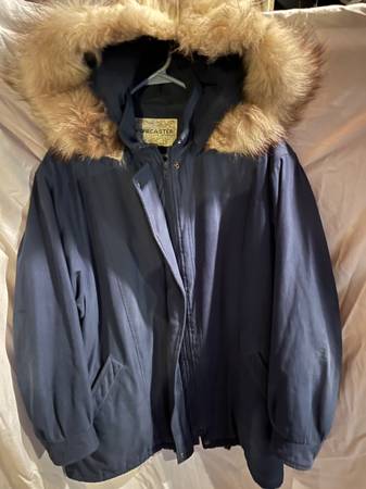 Women's Navy Winter Jacket made by "Forecaster of Boston" Size Medium Detachable Hood with Fur Trim Great pre-used condition....no rips or tears! Pick up today for only $15! (Cash only, please)