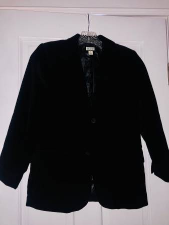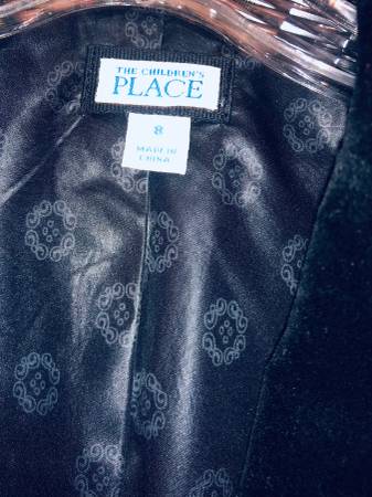 Quality Childrens Place Girls Blazer. Beautiful black velvet with satin lining. Front flap pockets. Button front and cuff detail. Size 8 VERY LIKE NEW CONDITION!